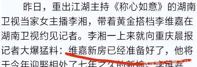 “为她复出” 早些年李湘在宣传《称心如意》的记者会上曾爆出李维嘉有一段隐藏了长达7年的恋情。 当时新房都已经准备好了,并表示最快2014年就会结婚。 但是这件事到后来却没有后续了,不少网友猜两人已经分开了。