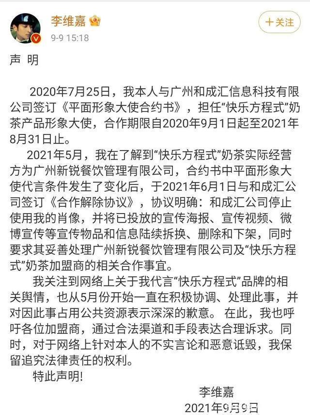杜海涛和吴昕也都有自己新的工作,只有李维嘉,好像从此之后消失了一样。 他没有再像之前那样,有特别高的曝光了,而是偶尔去到一些综艺节目当嘉宾。 在加上那次的代言事件,由李维嘉代言的“快乐方程式”奶茶。